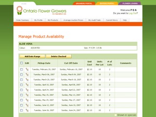 The website allowed growers in Ontario to place their products and product availability online. Registered buyers could login to the system and purchase grower products and choose which days they would like to pick up their products.